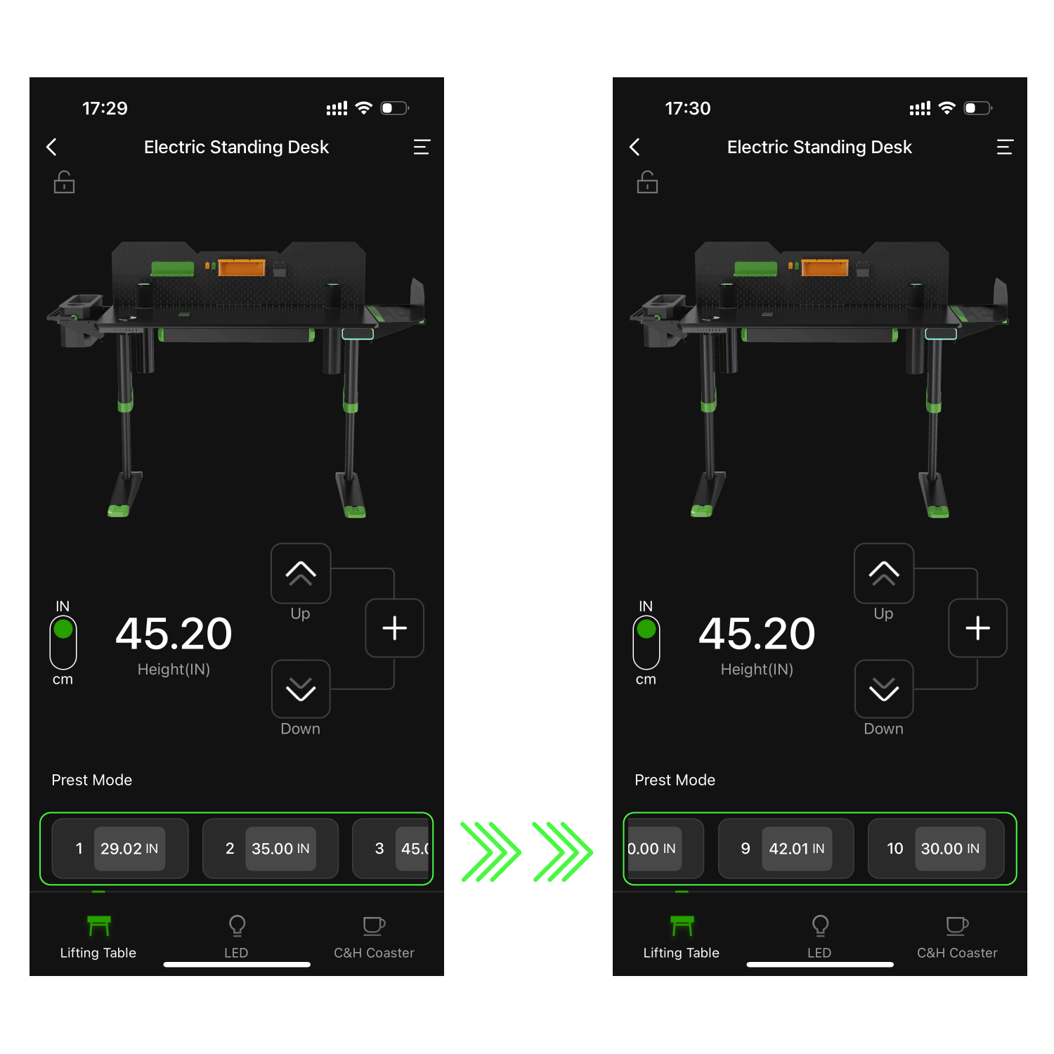 Find your perfect ergonomic position instantly. With 10 programmable height levels ranging from 29''-47'' (73-120 cm), switching between sitting and standing is effortless and precise.