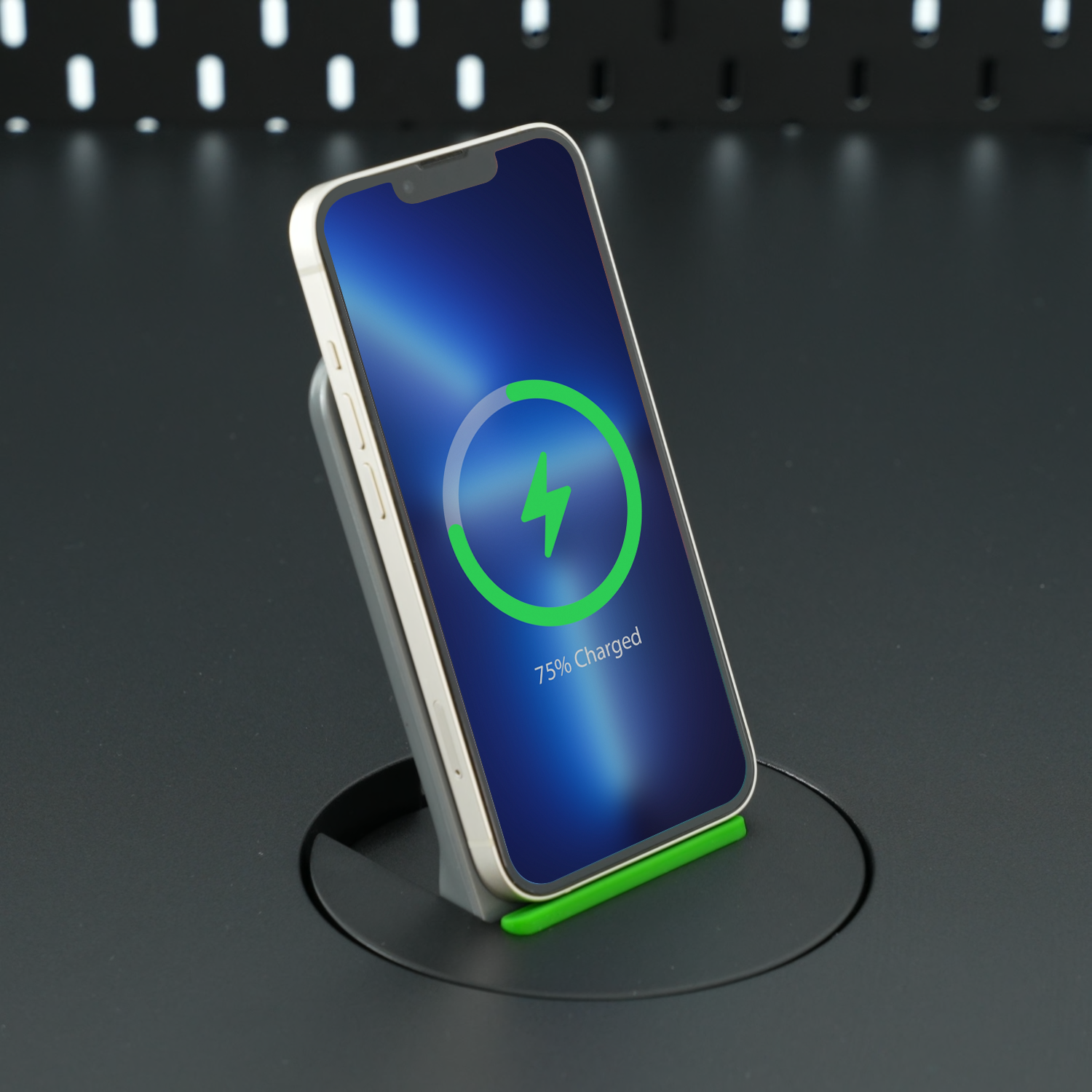 Simply place your smartphone on the built-in wireless charging pad for effortless power, keeping your device ready without extra cables.