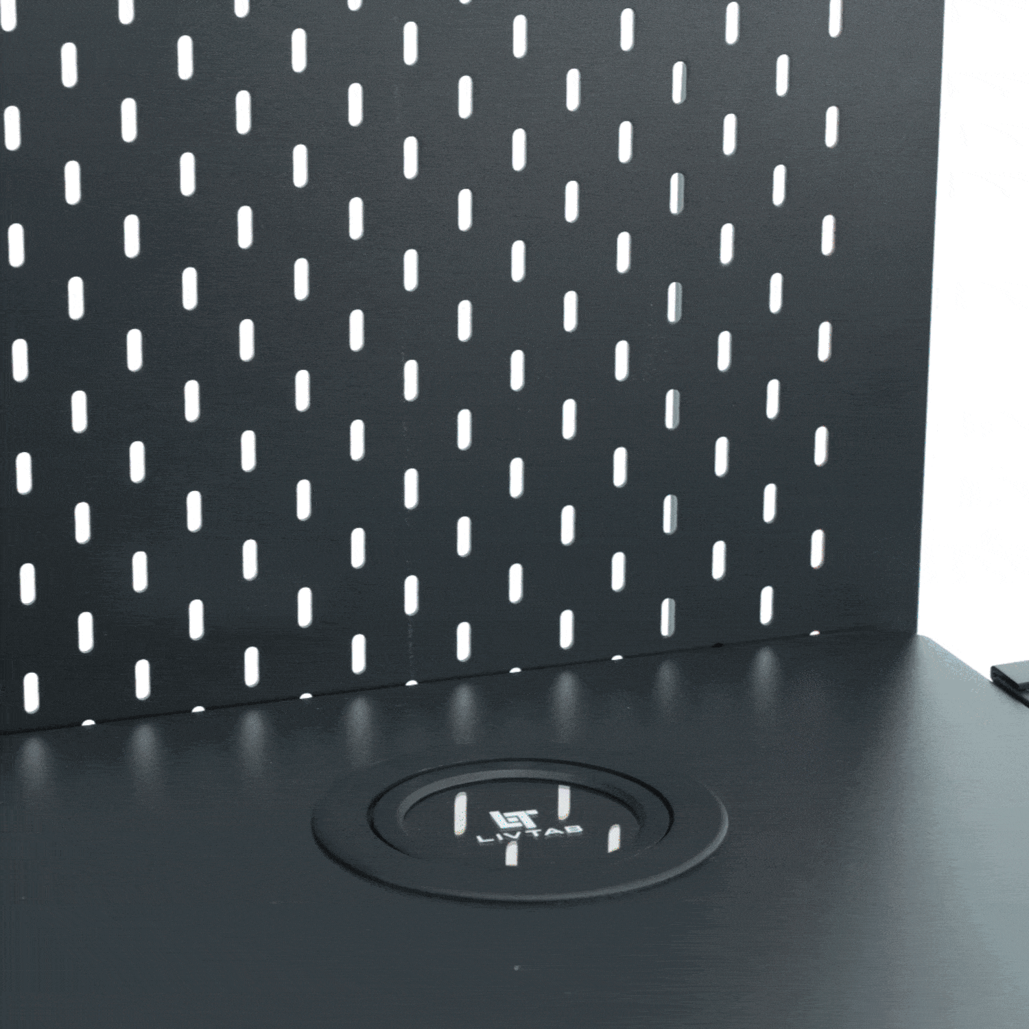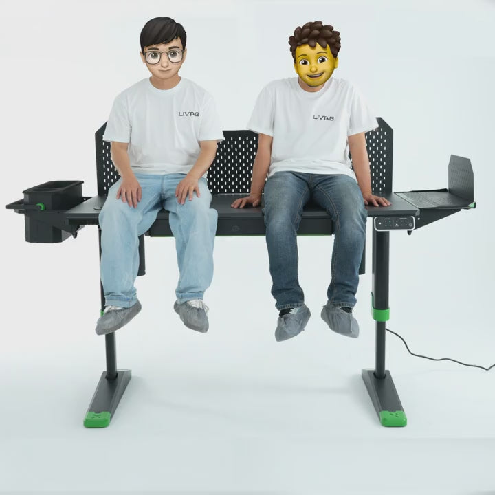 The LIVTAB CyberOne Standing Desk is a smart, motorized desk designed for creators, gamers, and professionals. Featuring dual motors for smooth height adjustment, built-in wireless charging, RGB ambient lighting, and a hidden power strip, it combines performance with style. Upgrade your workspace with this high-performance electric standing desk.
