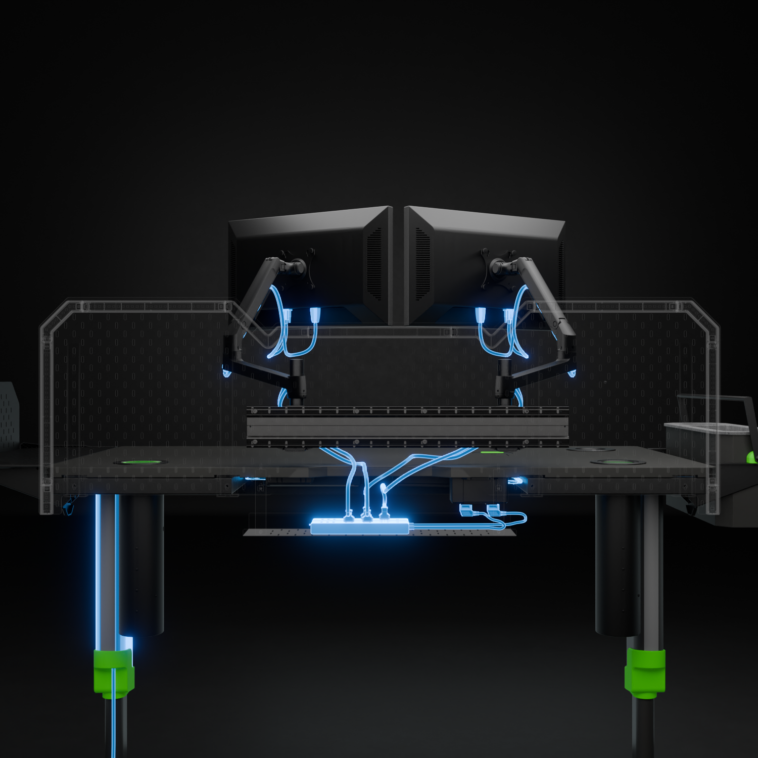 Keep your workspace pristine. Our built-in cable organizer ensures all your cords are neatly tucked away, eliminating clutter and creating a clean, focused environment.