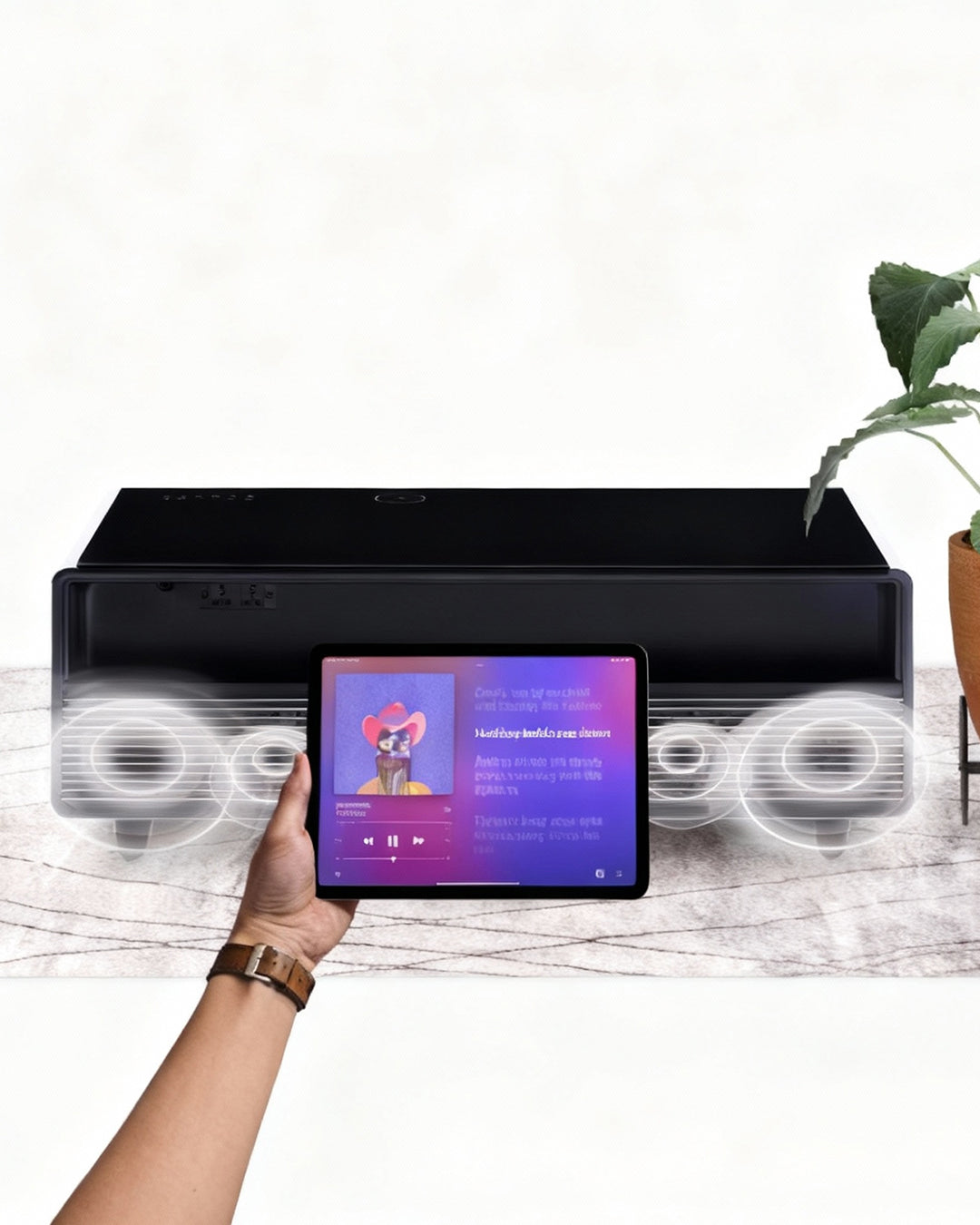 Wide sound coverage paired with multiple lighting modes creates an immersive living room experience.